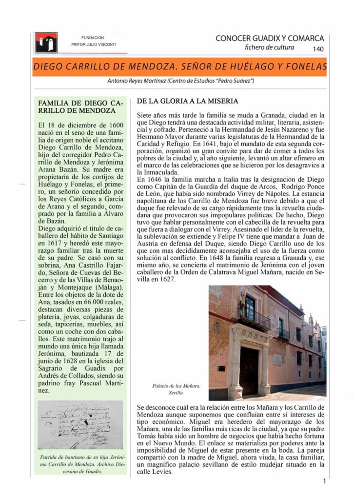 Conocer Guadix y comarca, ficha nº 140. Diego Carrillo y Mendoza